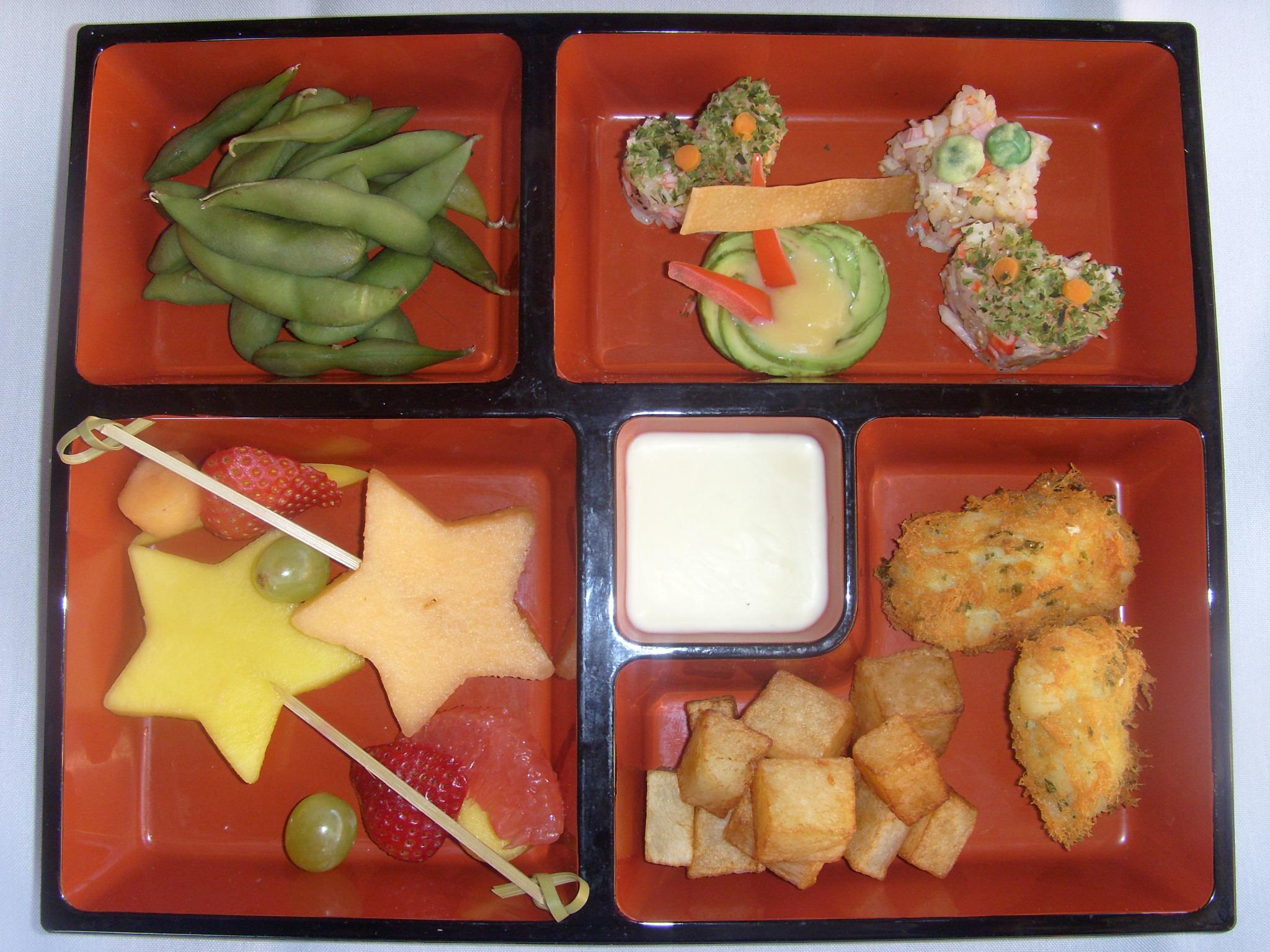 Perry's baby bento boxes are offered every Saturday with the purchase of lunch from 11am to 3pm and every Monday with the purchase of dinner from 5:30pm to 10pm for only $8! A playful and healthy new menu will be featured every month. February Baby Bento Box Fruit shapes: cantaloupe, pineapple, mango, strawberries, grapes Onigiri Stuffed with Sesame Crabmeat Avocado Salad with Tomato & Nuta Black Edamame Bravas Potatoes Fish Fritters with Honey Aioli