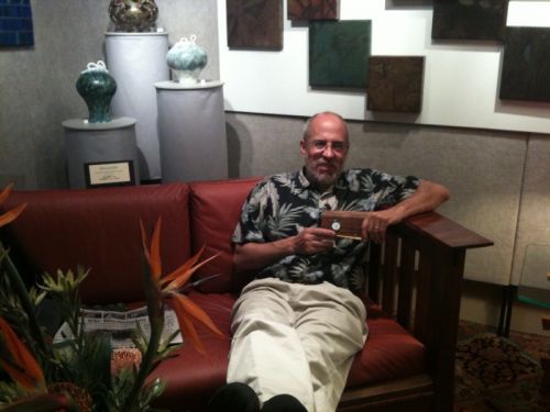 I thought I would try something different this year so rather than showing my own furniture (www.ortizstudios.com ; facebook: Robert Ortiz Studios) I thought I’d invite several of my artist friends to exhibit their work with mine in an attempt to create a more homelike setting. We were Rob Glebe, metal; Alice Pickett-Lewis fiber and Manick Burton, ceramics. Two of the awards presented at the show went to Rob – First Place Home Accessories and Alice for Best Body of Work. Needless to say, I am proud to have invited them to the show and thankful that Karla Little, the show’s director, was willing to let me bring them along. My present studio is in Historic Chestertown, but I spent my first 10 years making furniture in Baltimore. I sent invitations to the show to about 40 area clients and friends and many of them came to visit, say hello and see the show. Every one of them was surprised by the low turn out and hoped that the show would return next year. Most importantly, for me, I discovered Maggie Moos award winning ice cream and got to eat at Miss Shirley’s Restaurant. After all, there’s more to life than business.