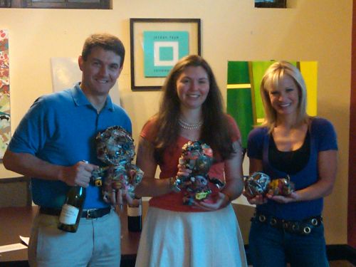 Pictured Left: "live shots" on WBAL TV with Sandra Shaw previewing the Jazz&Blues Wine & Art Festival  Sunday, June 6 are Bill Romani, Federal Hill Main Street Vice President, Jordan Faye Block of Jordan Faye Contemporary Gallery, which is sponsoring a tent for 10 local artists, and Sandra Shaw.