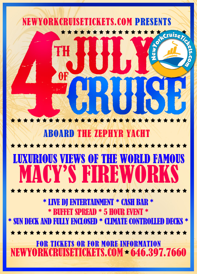 For More information call 646-397-7660 or log onto http://newyorkcruisetickets.com/events-zephyr-yacht-4th-of-july-cruise.php