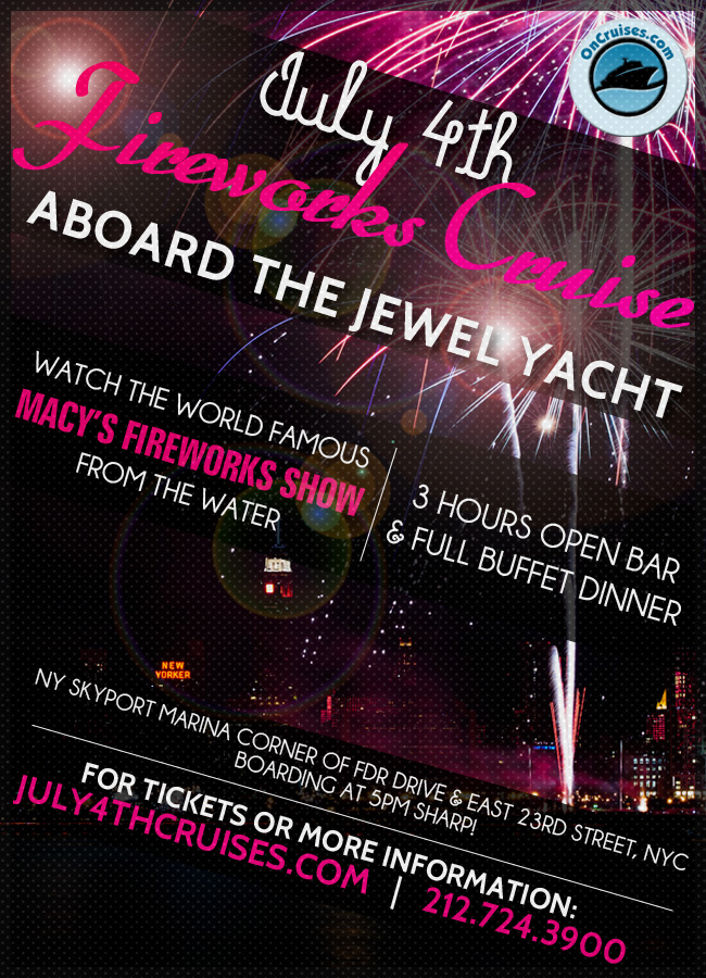 Once we get past March, the city streets of New York City really start to heat up, and we all start to anticipate one holiday weekend where we don the red, white and blue and show how much love we have for this country - 4th of July weekend! This year, forget about the crowded parks that leave you with no room, or the boring cookouts at your uncle's house, why not opt for a family friendly event that brings all of the entertainment you could wish for, but on the water!? The talk of the town this year has been all about the Jewel Yacht 4th of July cruise. If you're really looking to have the best view of the Macy's Fireworks spectacle (quite possibly the best fireworks show of the year) this is the best vantage point for you!