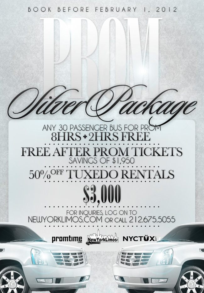 http://NewYorkLimos.com has released the best Prom Limo packages ever! The sooner you reserve your limo from http://NewYorkLimos.com, the more inexpensive it is. The Gold Package and the Silver Package are the #1 limousine packages in all of NYC for 2012 High School Prom, so check out all of our exclusive offers out for this upcoming prom year.