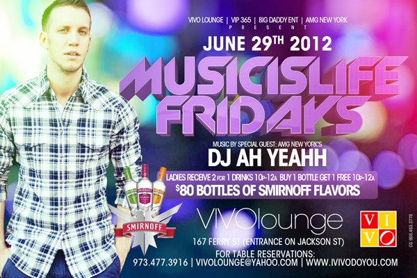 DJ Ah Yeahh will be DJing at Vivo Lounge in Newark NJ on Friday June 29th for Music is Life Fridays!