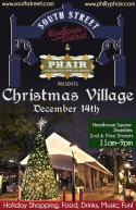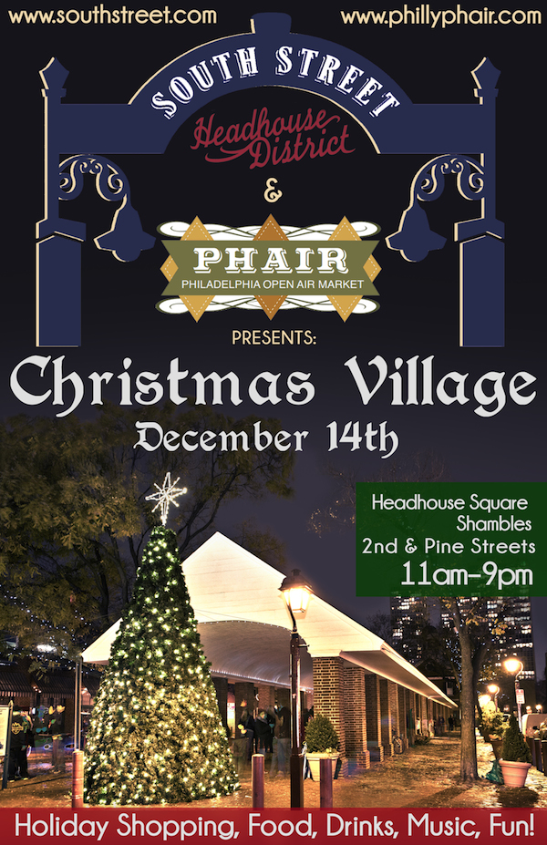 South Street Headhouse District and PHAIR, Philadelphia’s open-air market, presents a full day of handmade shopping at the first Christmas Village under the Headhouse Square Shambles (Second and Pine streets) on Saturday, December 14, 2013 from 11:00am to 9:00pm. Festivities will include 30 handmade artisans curated by PHAIR, a visit from Santa, holiday photos at Posey Booth, and food and drink from Brauhaus Schmitz.  Christmas Village is a free event, with shopping, food and drinks pay-as-you-go. For more information, visit southstreet.com, call (215) 413-3713 or follow @officialsouthst on Twitter.