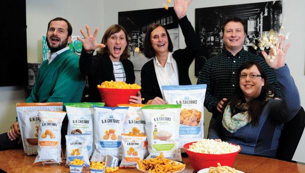 I love a family story. One that spans a vision over multiple generations. Welcome to my world: G.H. Cretors Popped Corn, the 4th largest USA popcorn brand. This new CITYPEEK find will feed my seasoned popcorn obsession at the Fancy Food Show in NYC. Phyllis and Claire Cretors are the mother-daughter team of the Illinois company, with popcorn roots dating back more than a century ago. In nearby Chicago, another branch of the Cretors family still makes the commercial popping machines invented by Claire’s great great-grandfather, Charles Cretors, in 1885. (Photo Credit: Candy Industry)